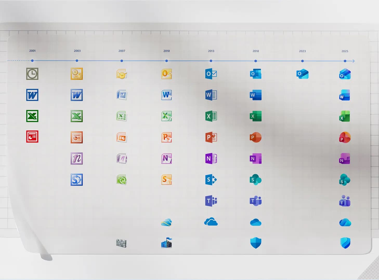 到了2025,软塌塌的,图标圆润过头了,还有一堆意义不明的高光和渐变,Excel不知道为什么就只有三个格子、PowerPoint那个折角我想半天都没想明白这玩意到底是怎么样的、Teams两个人下面连在一起又是哪个人才的主意、Defender我完全不知道盾牌里面那几个波纹到底是什么意思……还说这是符合Fluent Design的,玷污我Fluent Design名声,他还好意思做这张图出来