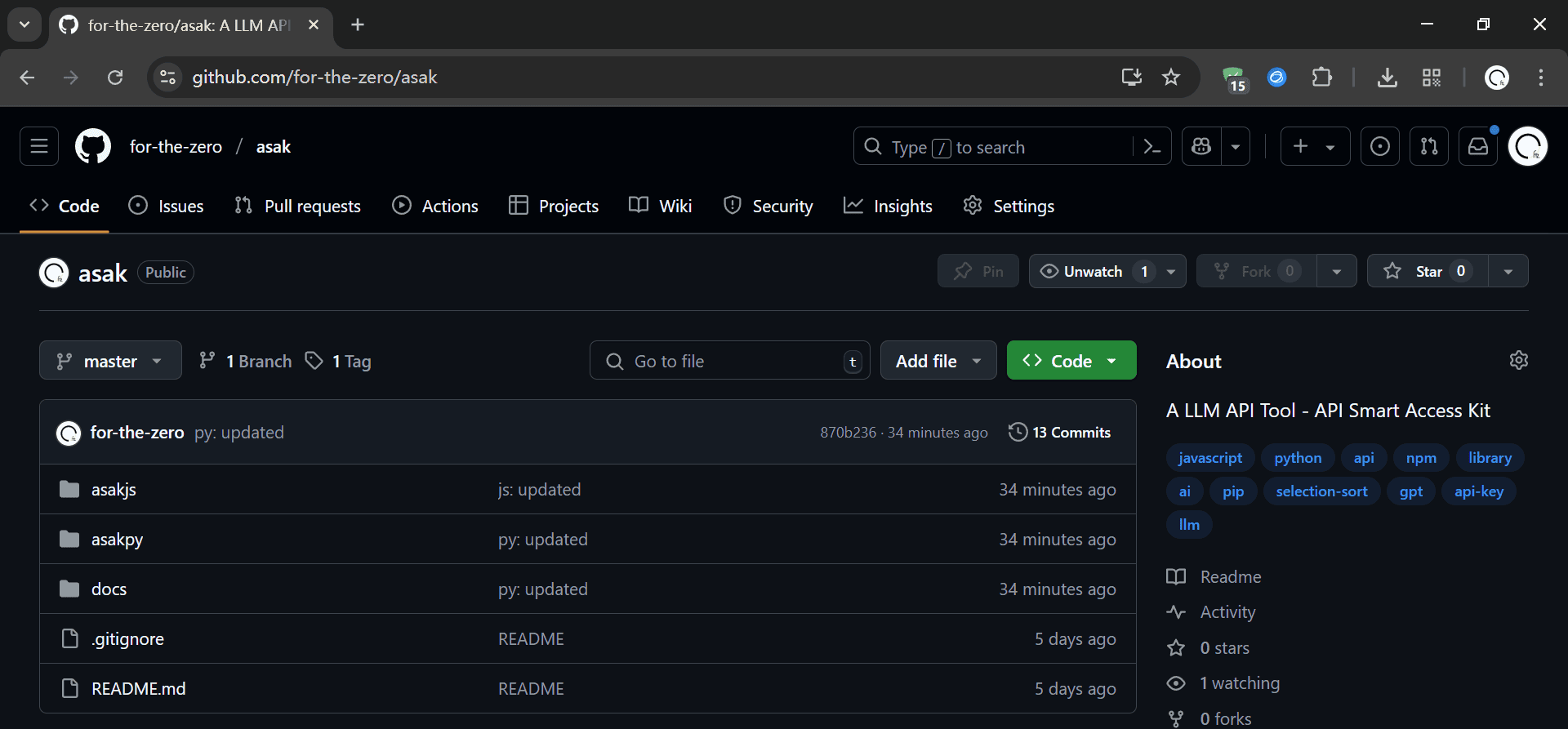 先挂链接:for-the-zero/asak: A LLM API Tool-API Smart Access Kit
