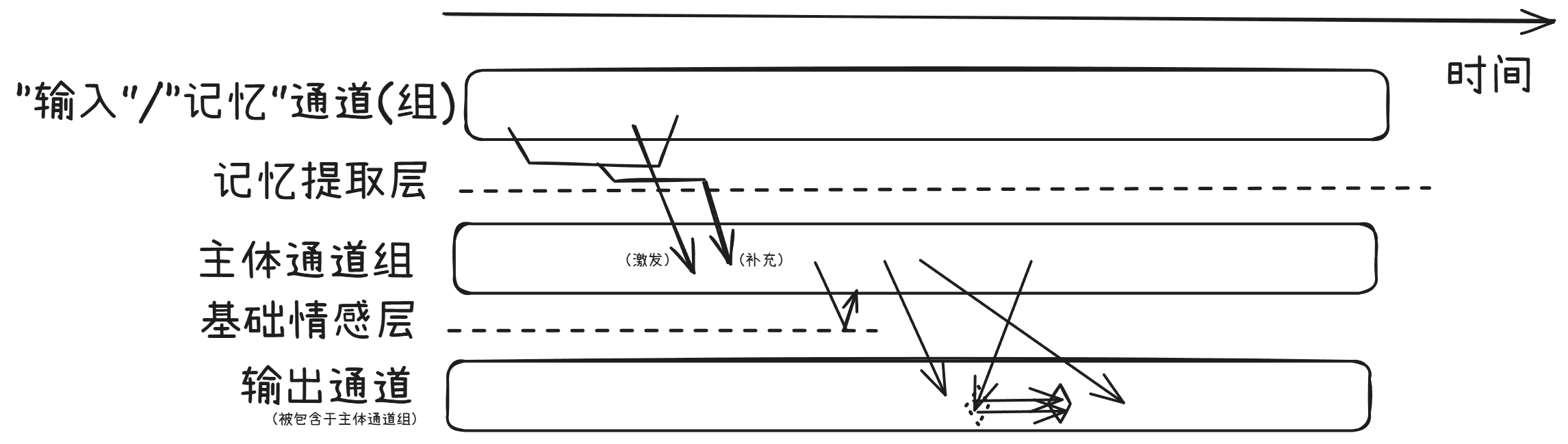 我想在我之前写过的多通道输出混合模型的基础上思考,但是又不太一样,最主要的是想要实现跟真实的记忆和实时反馈机制,不一定要聪明,不一定要什么都会,可以笨一点