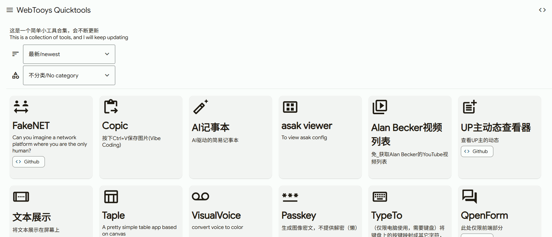 可是啊,我看了我还是放不下Quicktools这个称呼,也懒得改Github仓库名,这一改我还得跑到Netlify和Vercel那边去……