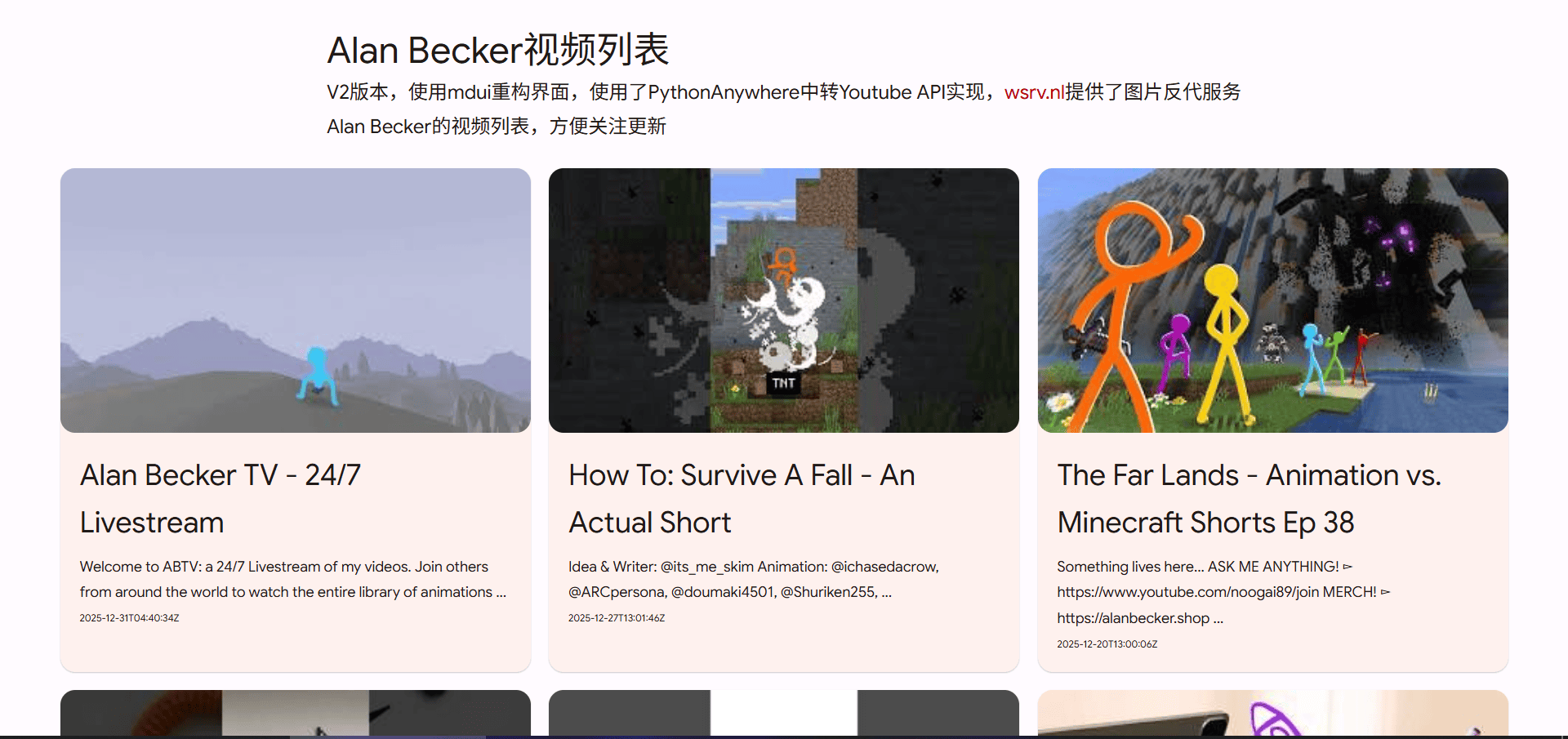 我学前端之前,我用python做了一个用PythonAnywhere+Flask+API的查看视频列表的网页,还用的是MDBootstrap